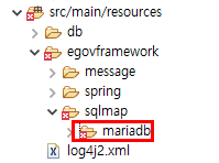 src/main/resources/egovframework/sqlmap의 example 폴더명을 mariadb로 변경(각자 원하는 폴더명 기재)